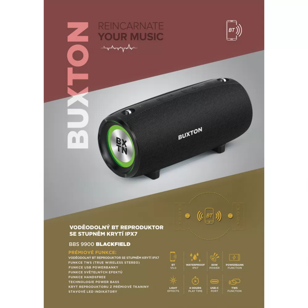 Bluetooth reproduktor Buxton BBS 9900 BLACKFIELD Pořádná party je tady Prémiový přenosný reproduktor BBS 9900 s technologií Power Bass zajistí… Celý popis