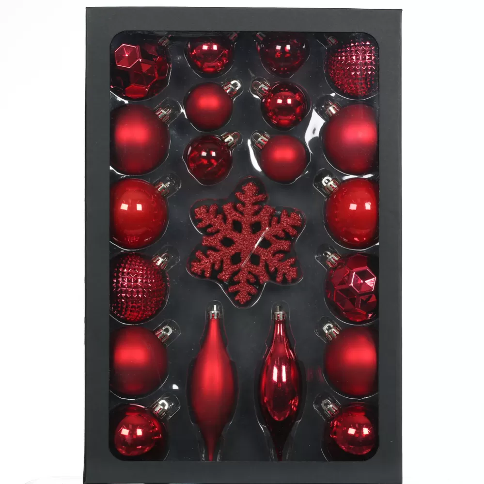 Sada 25 kusů vánočních ozdob v tradiční červené barvě