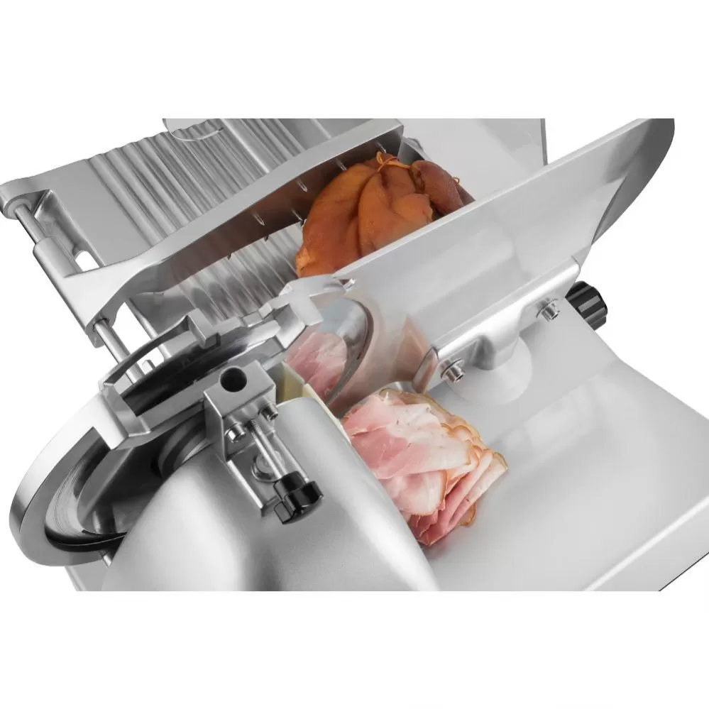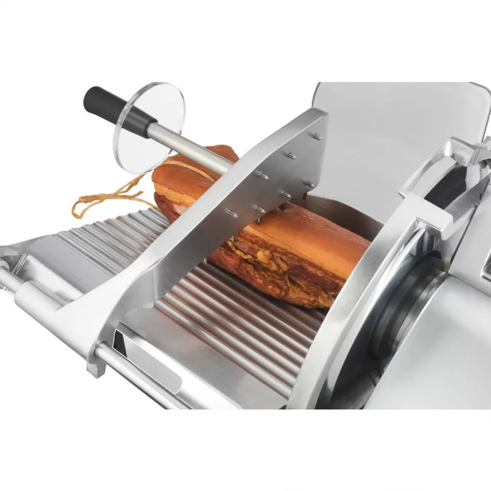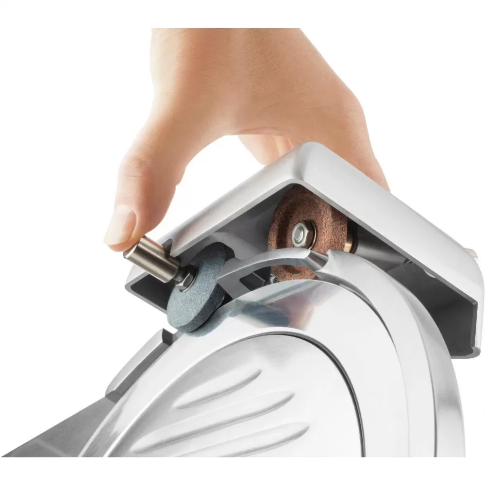 Nezáleží, zda připravujete svačinu nebo večírek pro 30 lidí. Extrémně stabilní kráječ s profesionálními parametry zvládne domácí použití i catering jako nic. V pevném kovovém těle se ukrývá 240W motor, který zajišťuje plynulý výkon velmi ostrého nerezového kotouče. S lehkostí naplátkuje měkký sýr i tvrdý salám.