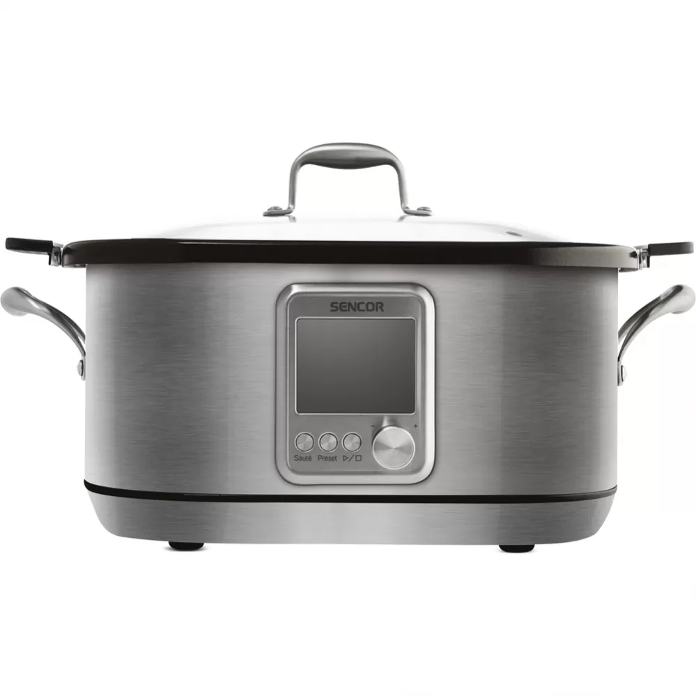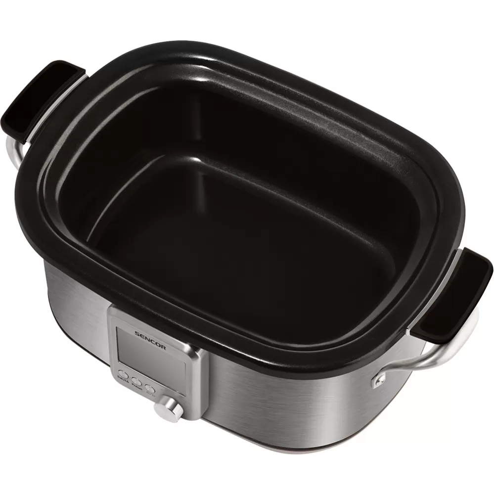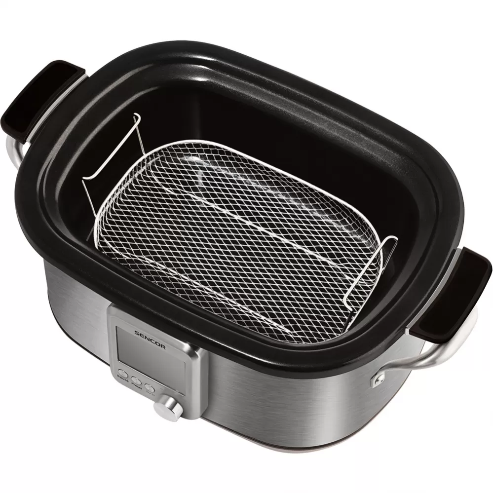 Obsah balení: Pomalý hrnec s nádobou a víkem, napařovací hrnec a sous vide rošt z nerezové oceli, forma na pečení, ochranné