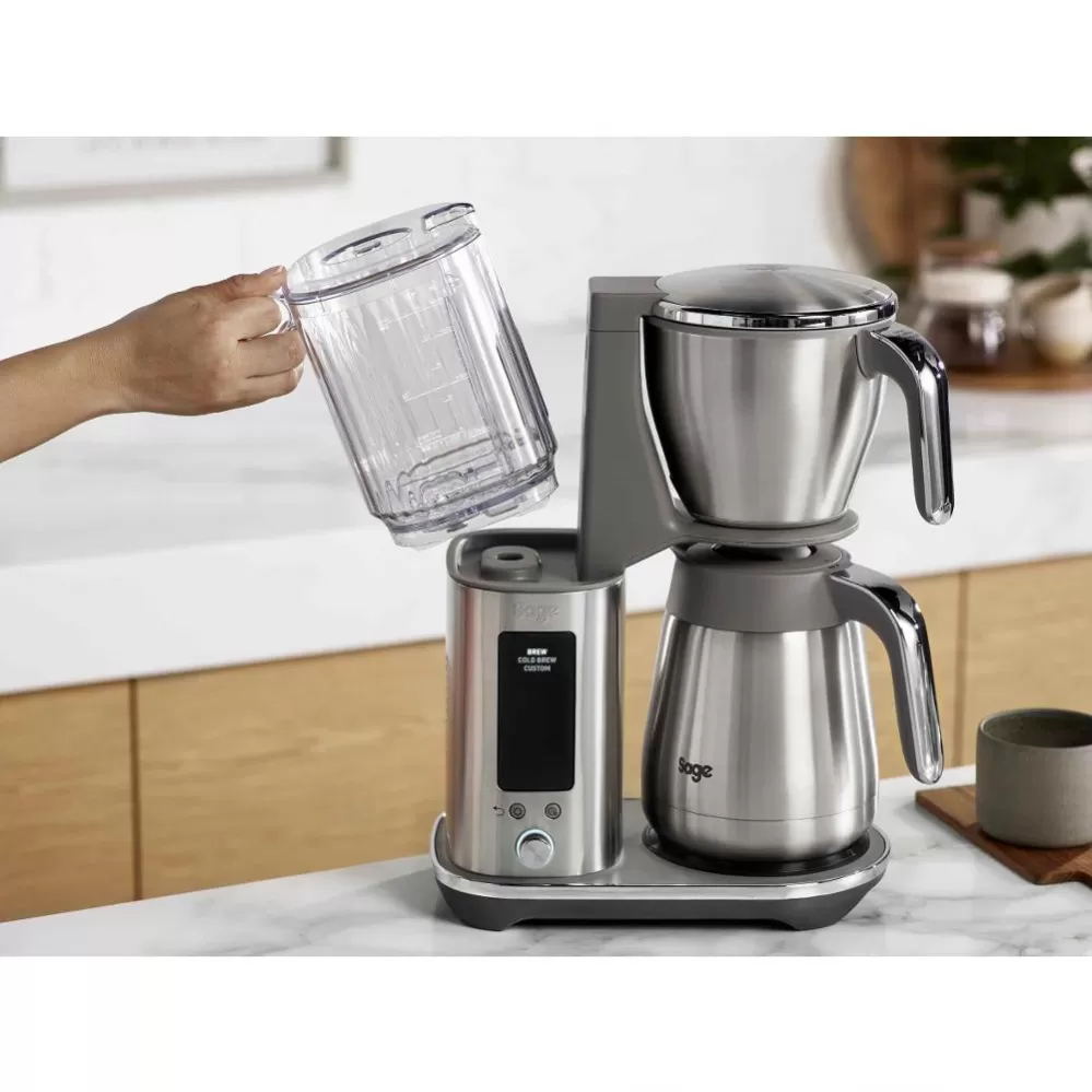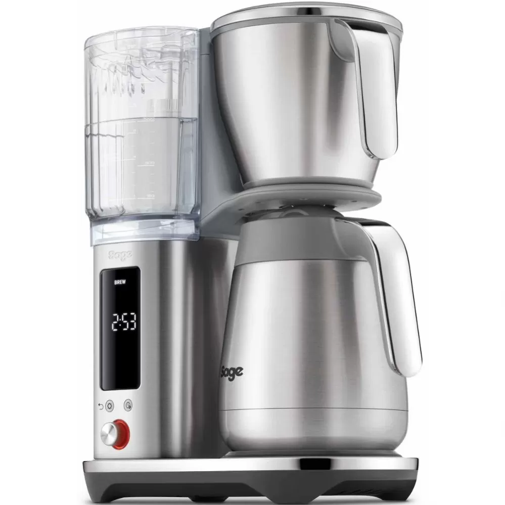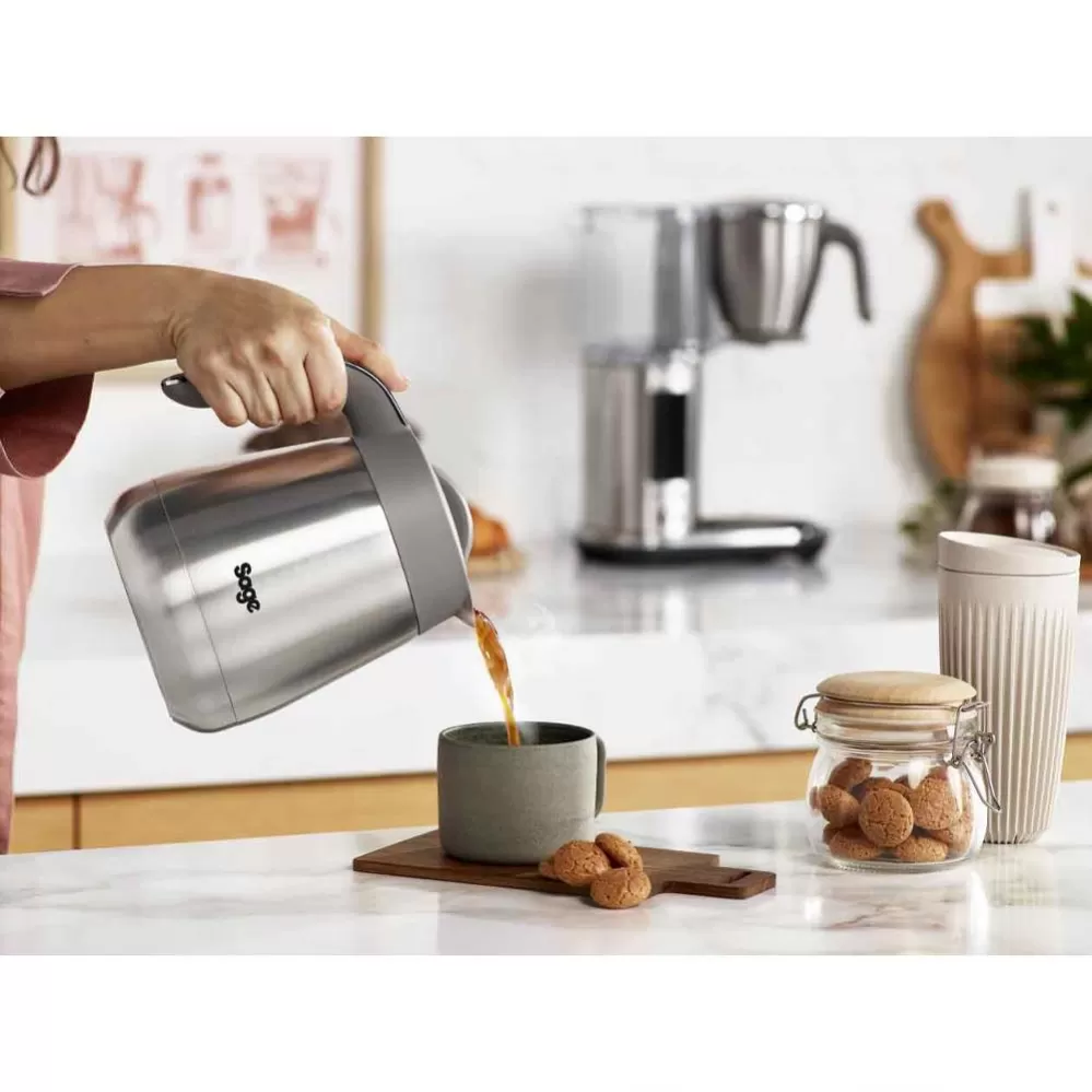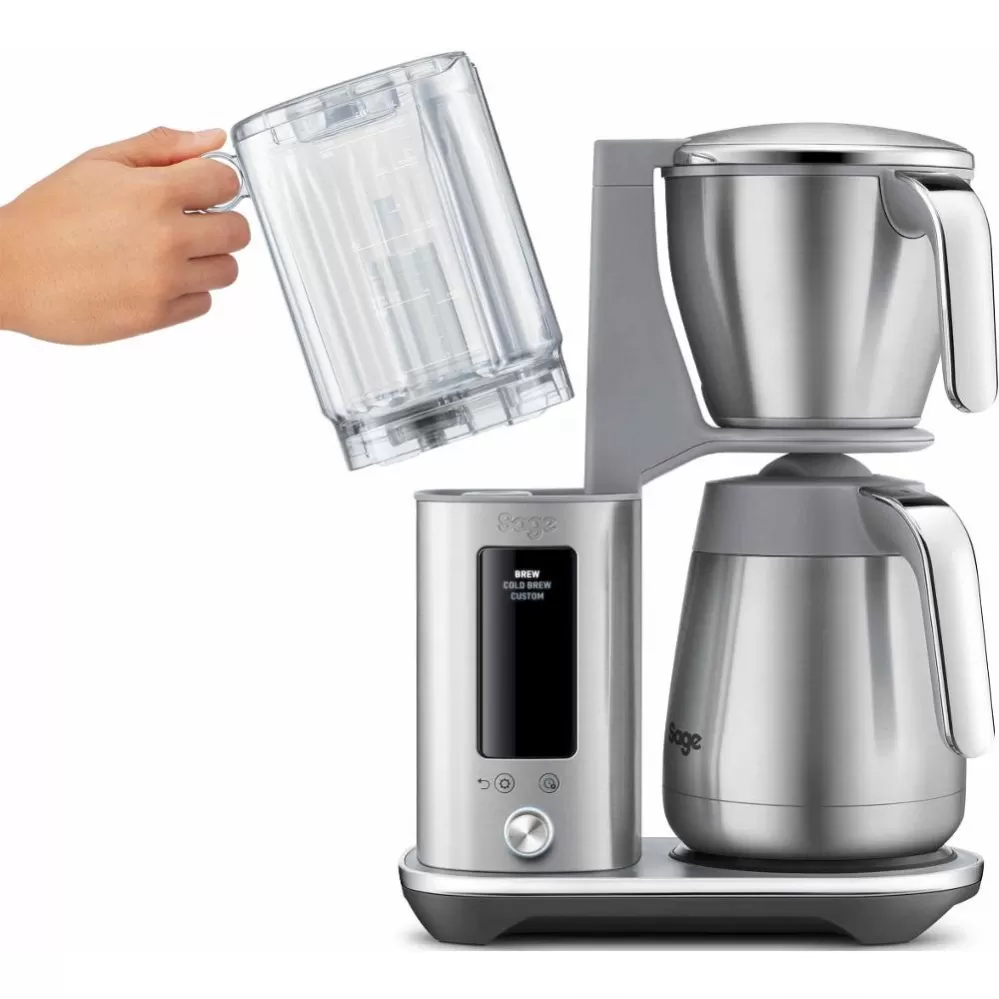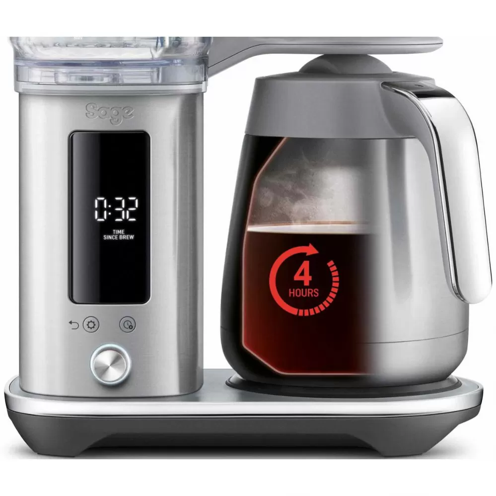 Dvoustěnná termokonvice udrží kávu teplou až 4 hodiny bez výrazné ztráty teploty nebo chuti, zatímco velká vyjímatelná nádrž na vodu se snadno doplňuje.