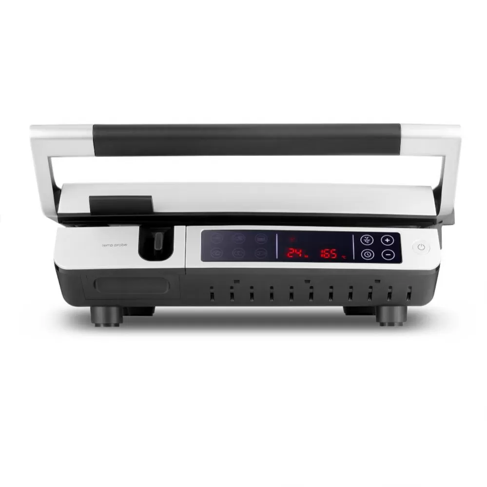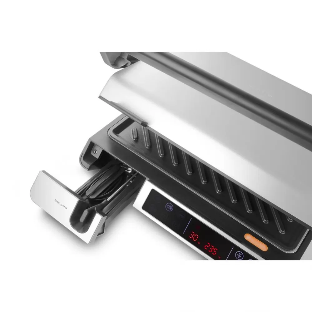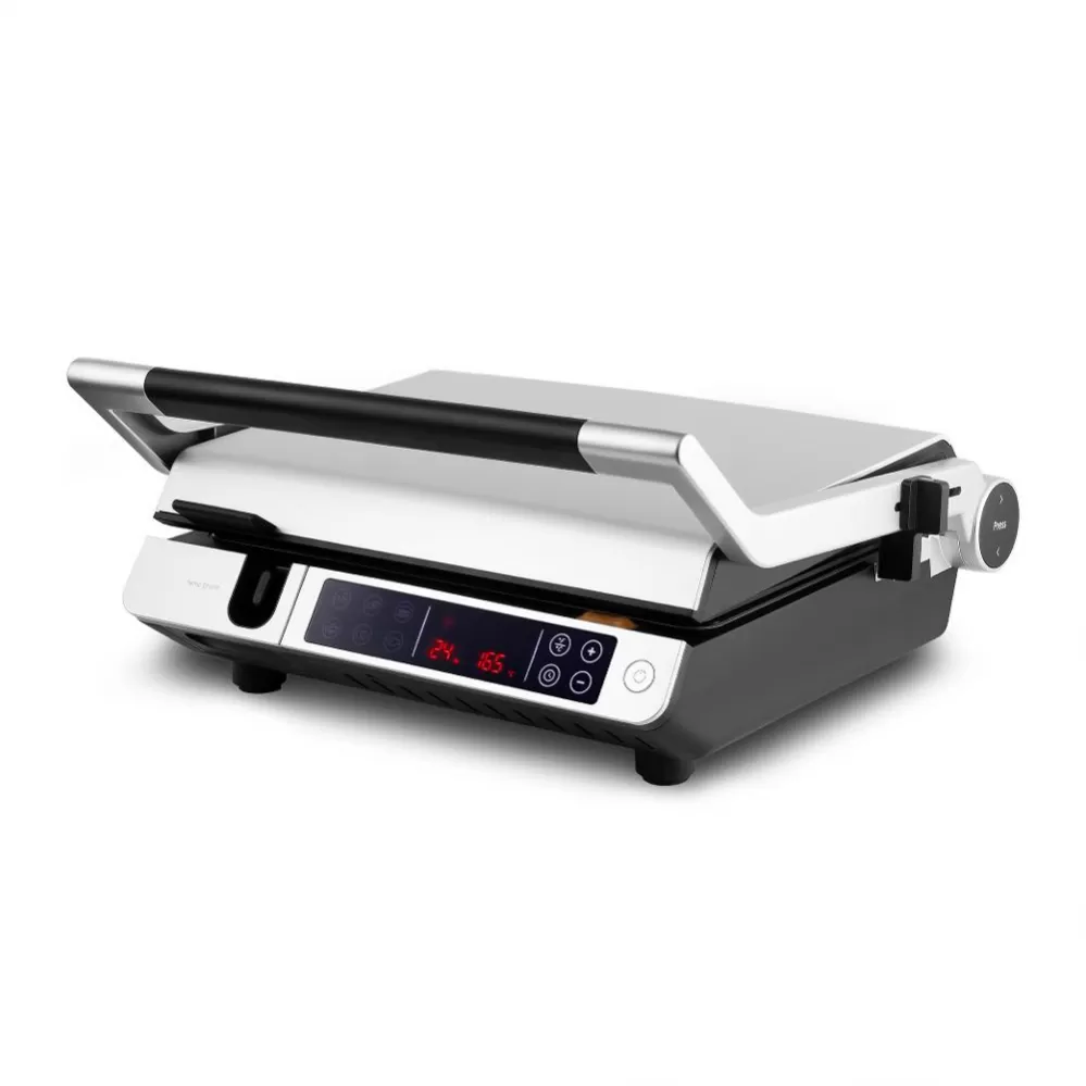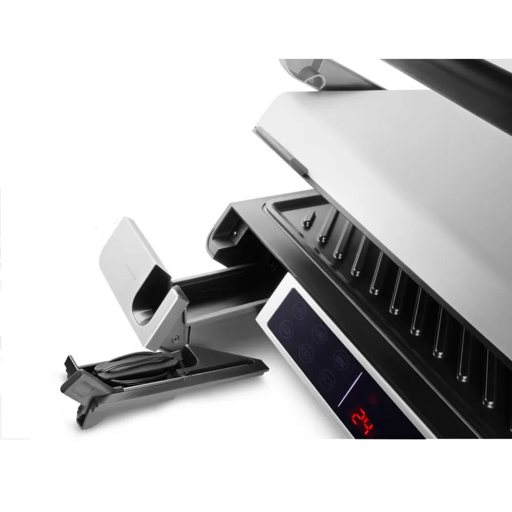 Na velkém, dobře čitelném dotykovém displeji si můžete zvolit z 6 nastavených programů od steaku po panini. Gril je vybaven časovačem, který vám pohlídá dobu grilování z jedné i druhé strany pokrmu.