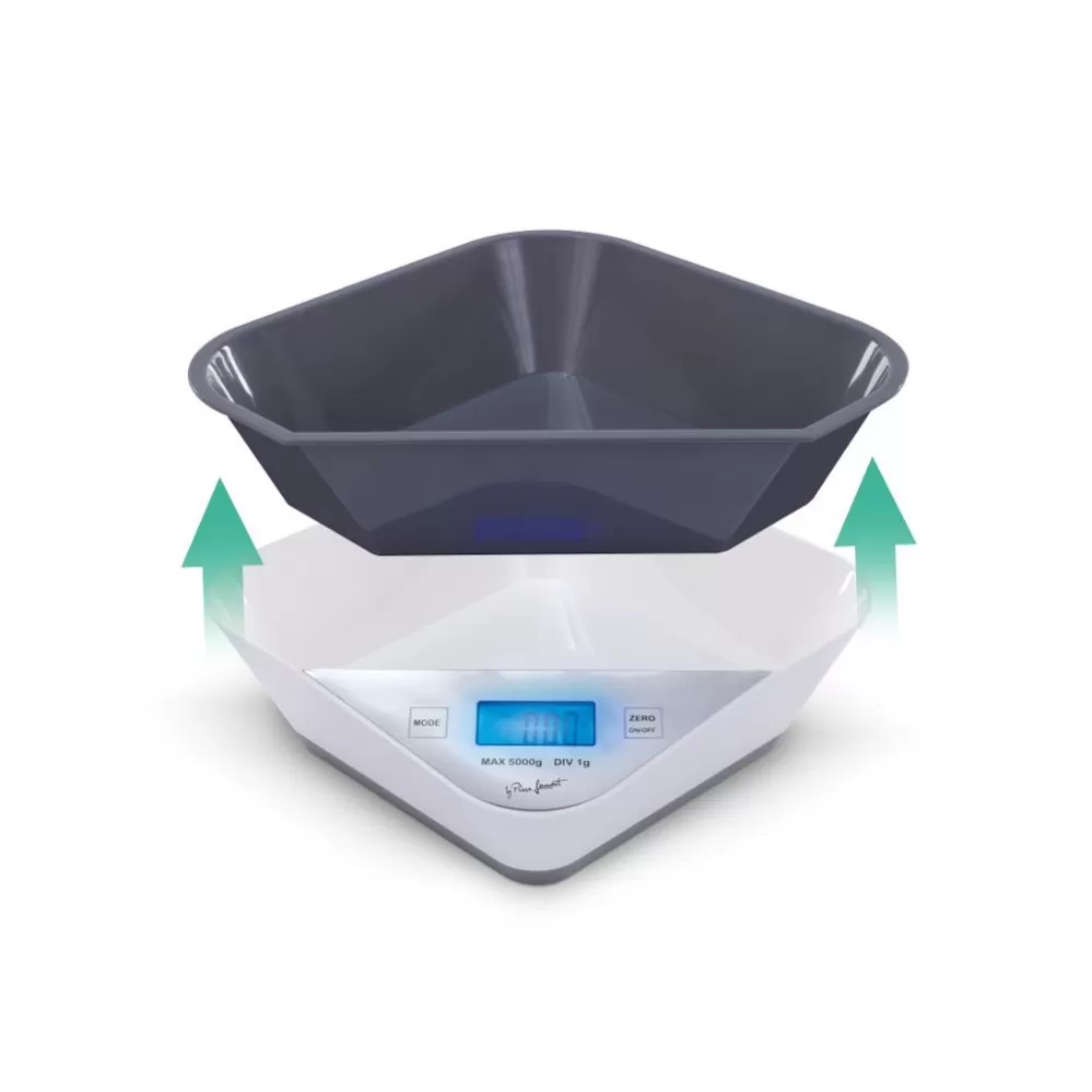 Váha má vestavěnou misku ve stejném tvaru jako odnímatelná miska.