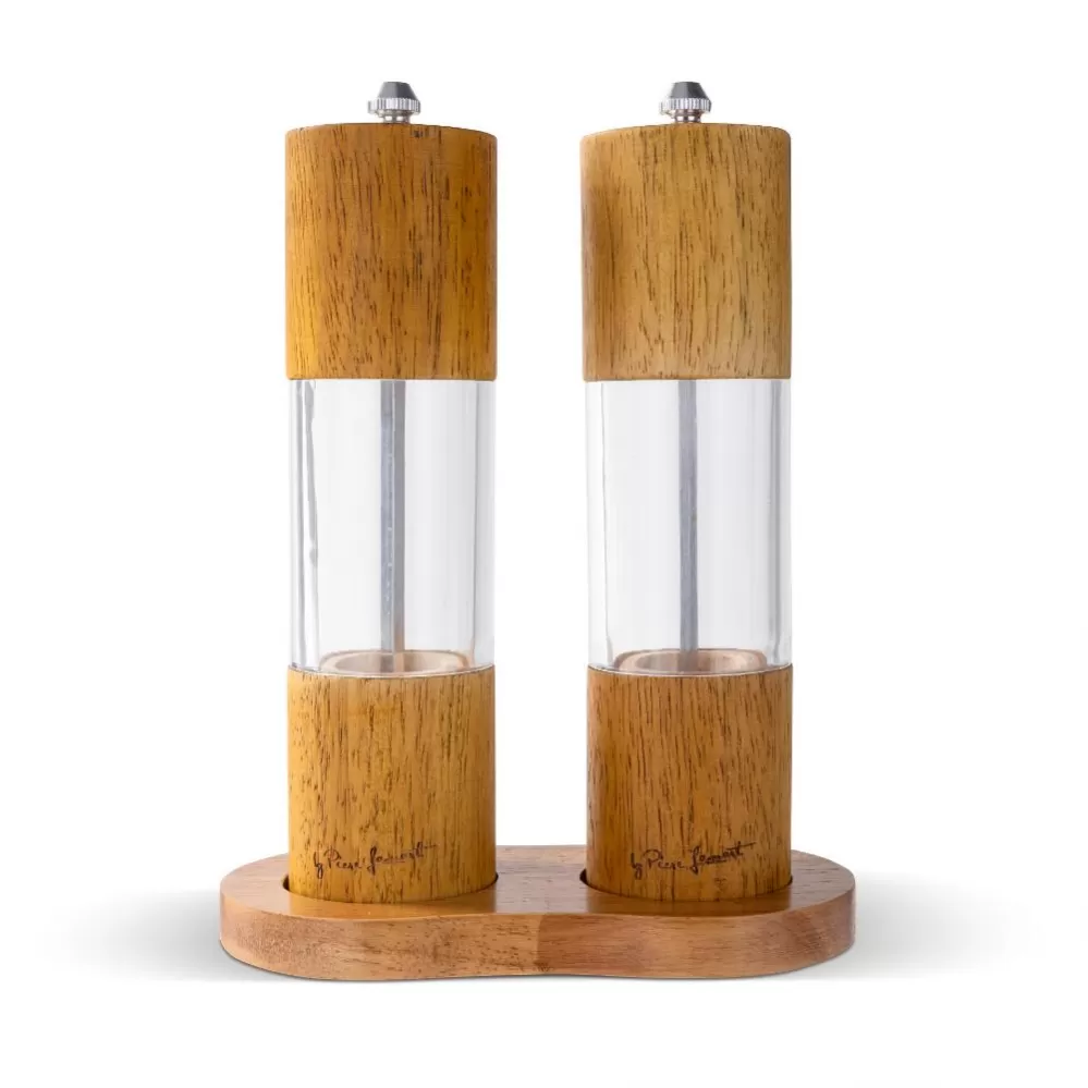 • Sada zahrnuje dva mechanické mlýnky na koření a stojánek.