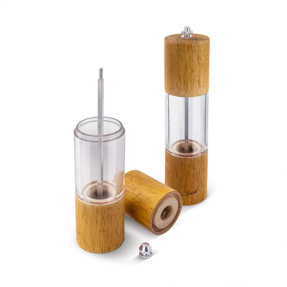 • Mlýnky na koření/pepř/sůl jsou vyrobeny z gumového dřeva a plastu s keramickým mlecím mechanismem s nastavitelnou hrubostí mletí.