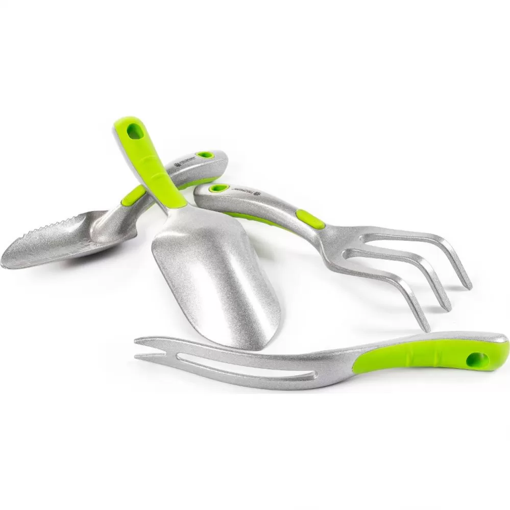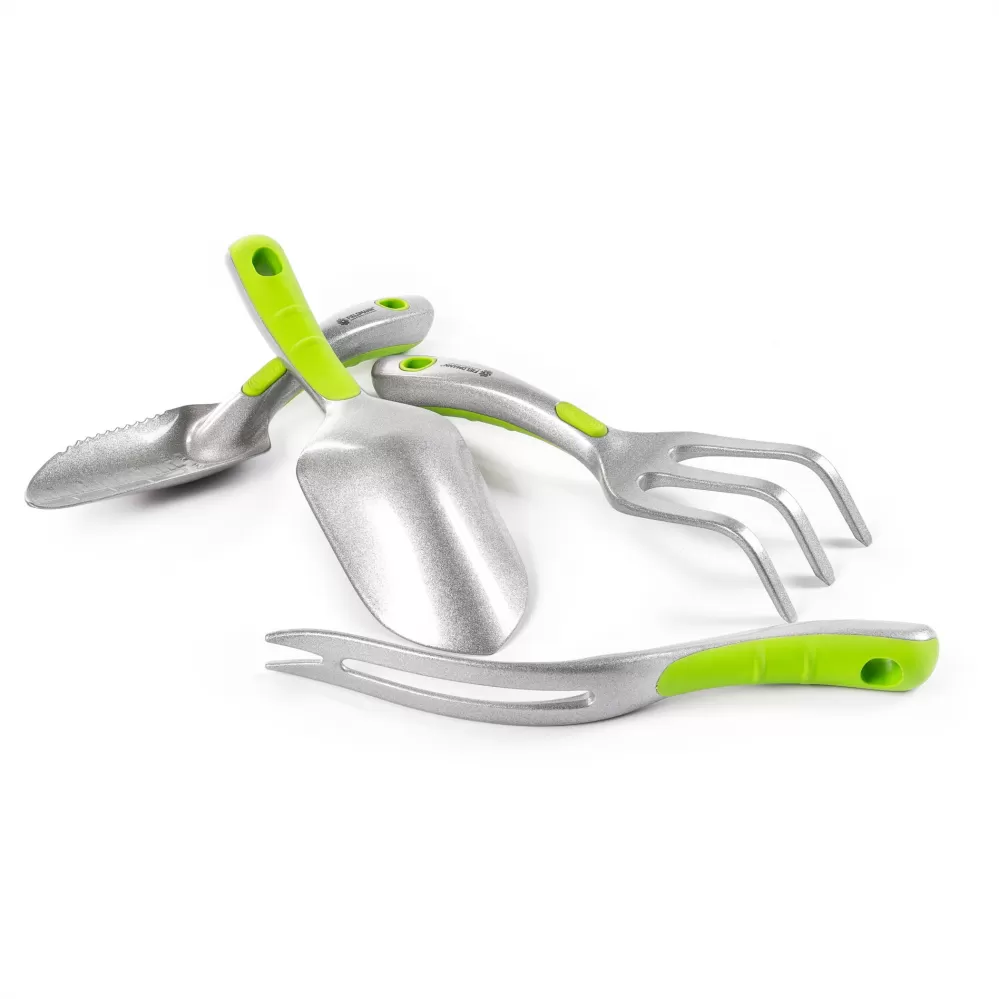 Zahradní nářadí je vyrobeno z hliníku – nezrezaví, nepraskne a neopotřebí se po pár týdnech používání. Kromě toho je materiál nenáročný na údržbu, a tak ho stačí otřít a uložit zpět do zahradního domku či dílny. Pokud se vám občas stane, že zapomenete nářadí venku na dešti, nemusíte si dělat starosti. Tahle výbava je připravená zvládnout i to.