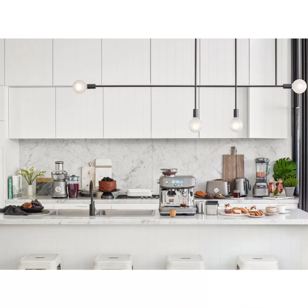 Pákové Espresso The Barista Pro™ doplňuje nejprodávanější řadu Barista kávovarů s integrovaným mlýnkem. Disponuje novým LCD displejem a novým intuitivním rozhraním, které je přehlednější a umožňuje tak přesnější nastavení mlýnku (až 30 různých nastavení hrubosti kávy), také umožňuje nastavit teplotu vody extrakce kávy.