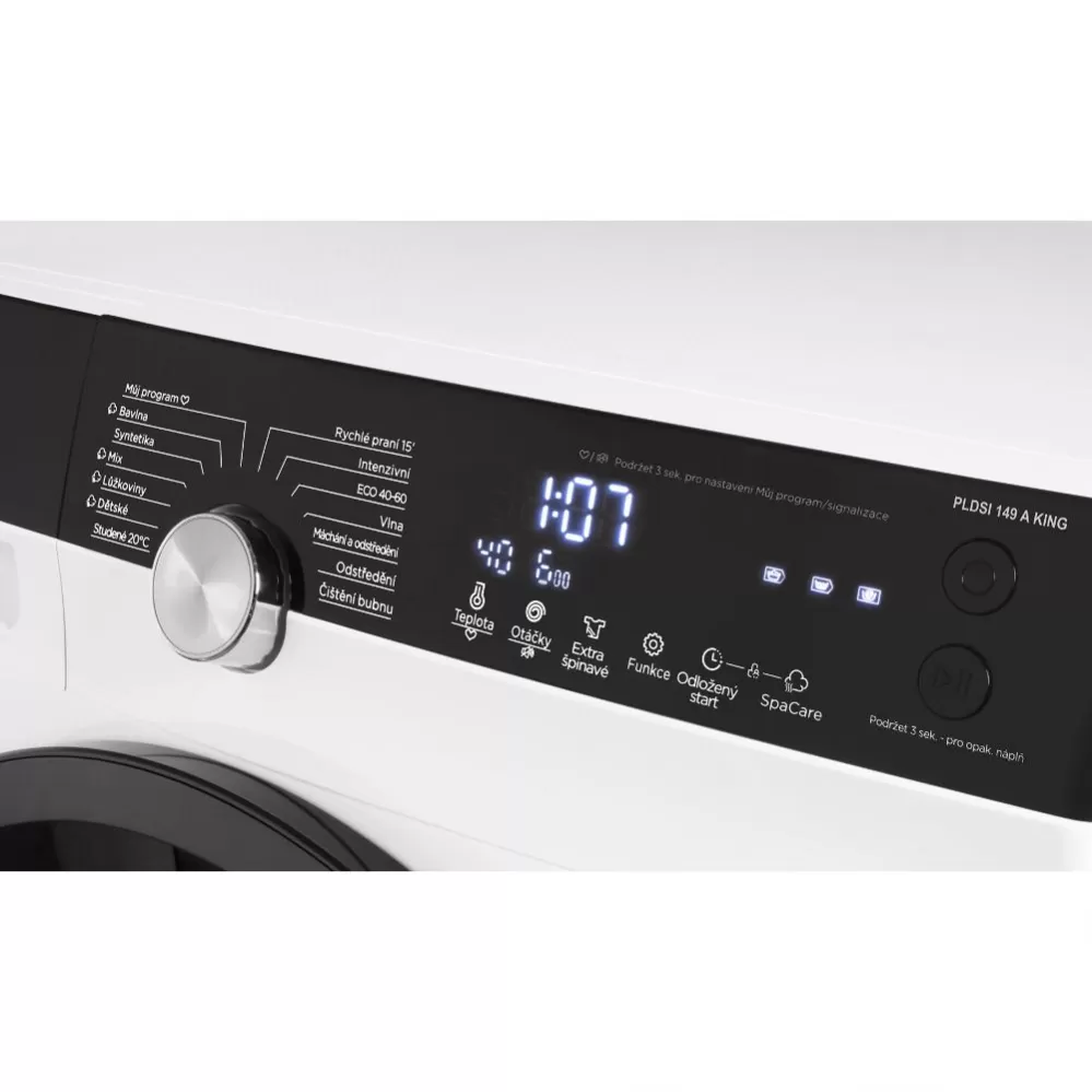 Předem plněná pračka Philco PLDI 149 AN King v energické třídě A, vypere až 9 kg prádla s možností až 1400 otáček za minutu. Parní program SpaCare pro vyšší účinnost praní, zničení bakterií a alergenů, Crystal buben a Invertorový motor s 10letou zárukou, napomáhá dokonalému výsledku praní a zároveň snižuje mechanické poškození prádla.