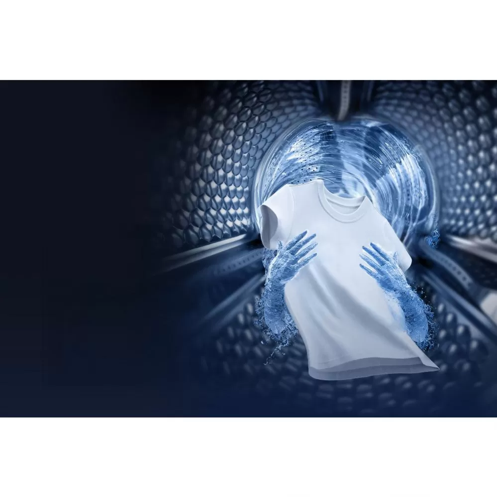 Důkladné praní díky funkci Pára a programu Antialergenní zanechá prádlo beze skvrn s hygienickou čistotou. Nabízí šetrný buben Crystal a užitečné funkce jako odložený konec nebo čištění bubnu.
