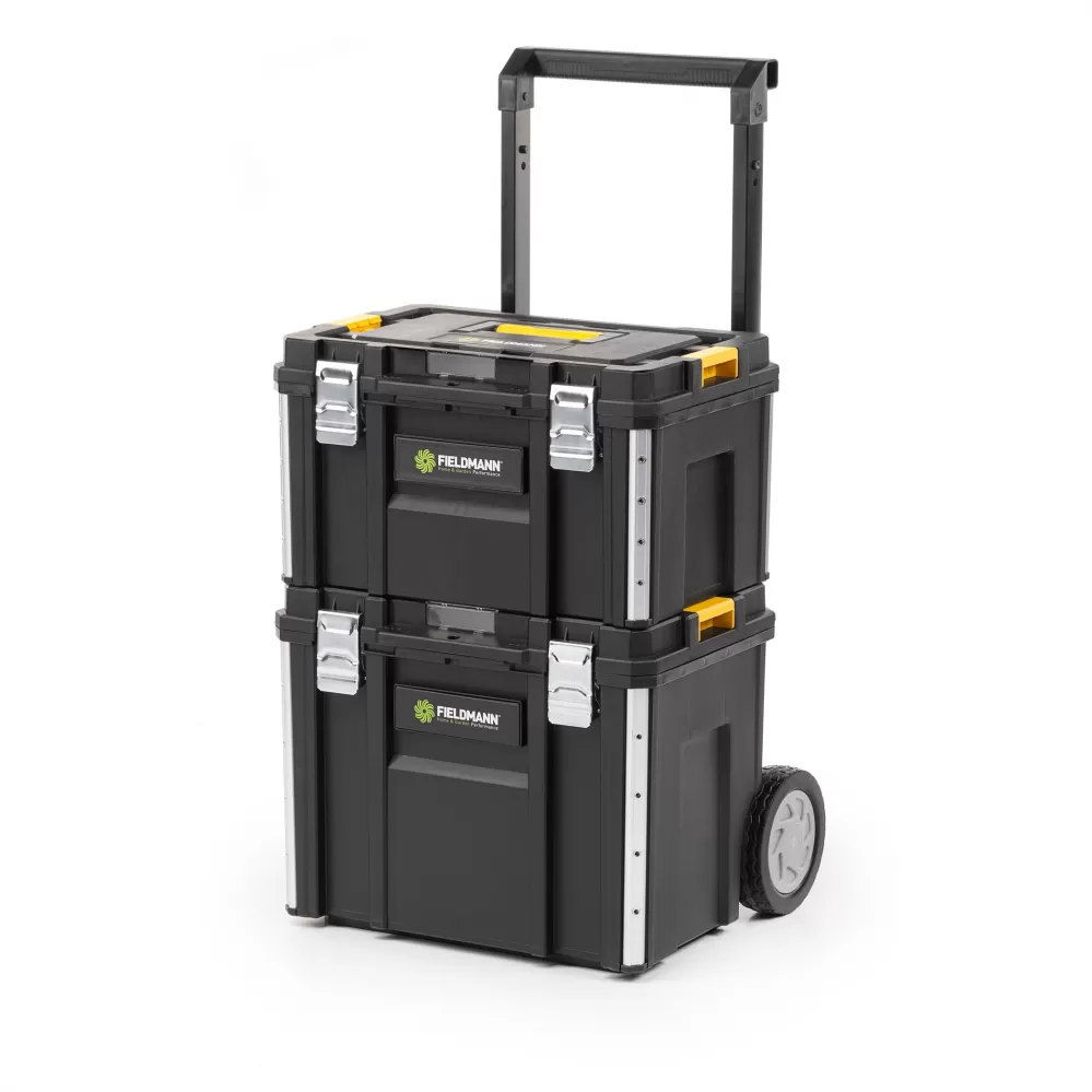 Pokud jste zastánci organizovaného pořádku v dílně, nebo si potřebujete uspořádat své ledabyle uložené nářadí, máte možnost pořídit si sadu boxů na nářadí Fieldmann FDN 4170. Praktická sada 4 boxů vám pomůže udělat si ve vašem nářadí pořádek a uspořádat ho tak, že budete mít o vašich věcech přehled a už nebudete muset nic hledat. Spolehnout se můžete na kvalitní materiál boxů, který zajišťuje jejich odolnost vůči nárazům, vodě i prachu. Pro váš komfort je sada opatřena teleskopickou rukojetí a terénními tlumícími koly, takže si můžete nářadí jednoduše převézt tam, kde ho budete potřebovat a mít ho kdekoli po ruce.
