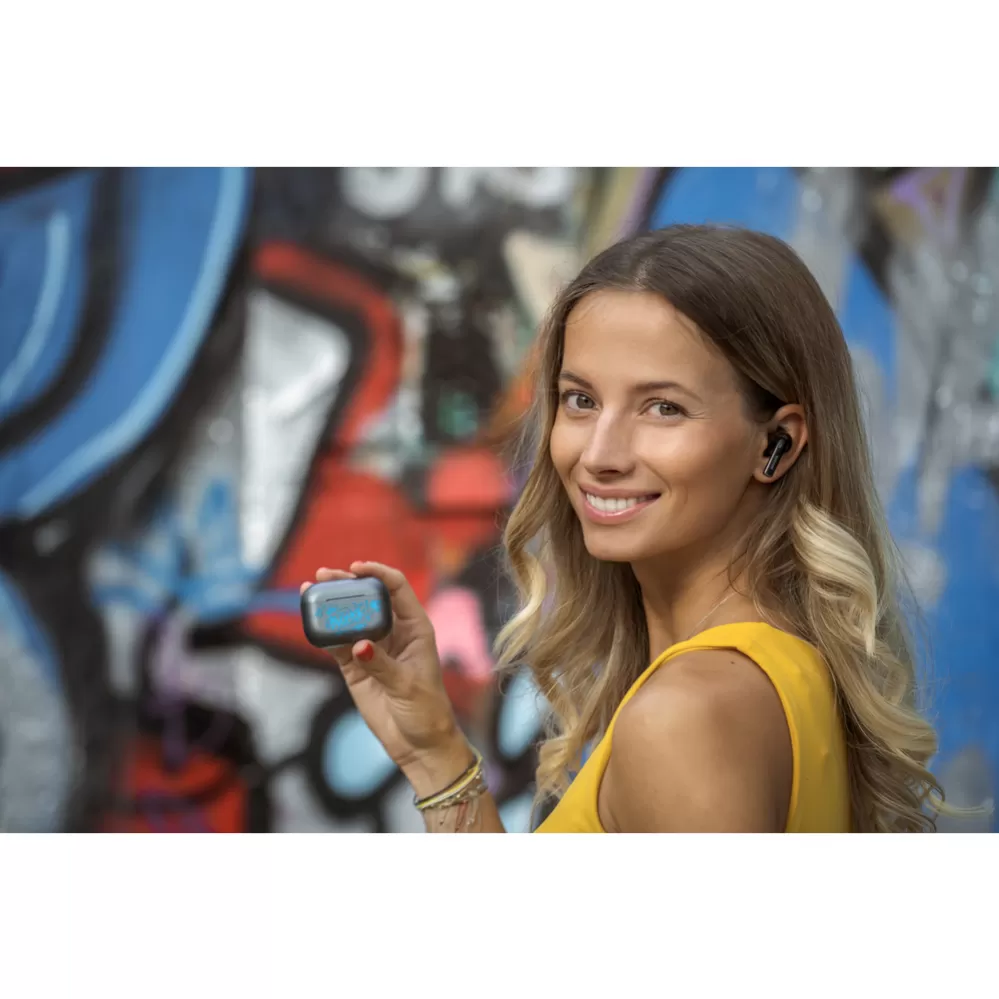 Hot funkcí je rozhodně herní mód, jenž se automaticky postará o nadstandardní požitek. Díky voděodolnost se nemusíš obávat deště ani potu. Pokud nejsi zrovna sportovní nebo herní nadšenec, tak bude pro tebe důležitější možnost využívání funkce handsfree, která ti pomocí integrovaného mikrofonu v každém sluchátku BTW 4600 zpříjemní pokec s kámoši. S připojením si nemusíš lámat hlavu, jelikož probíhá klasicky přes Bluetooth.