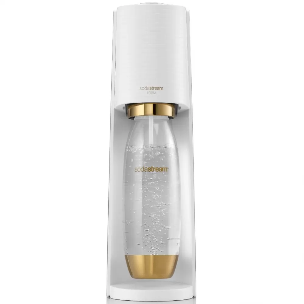 1× výrobník SodaStream TERRA bílý – zlatá edice