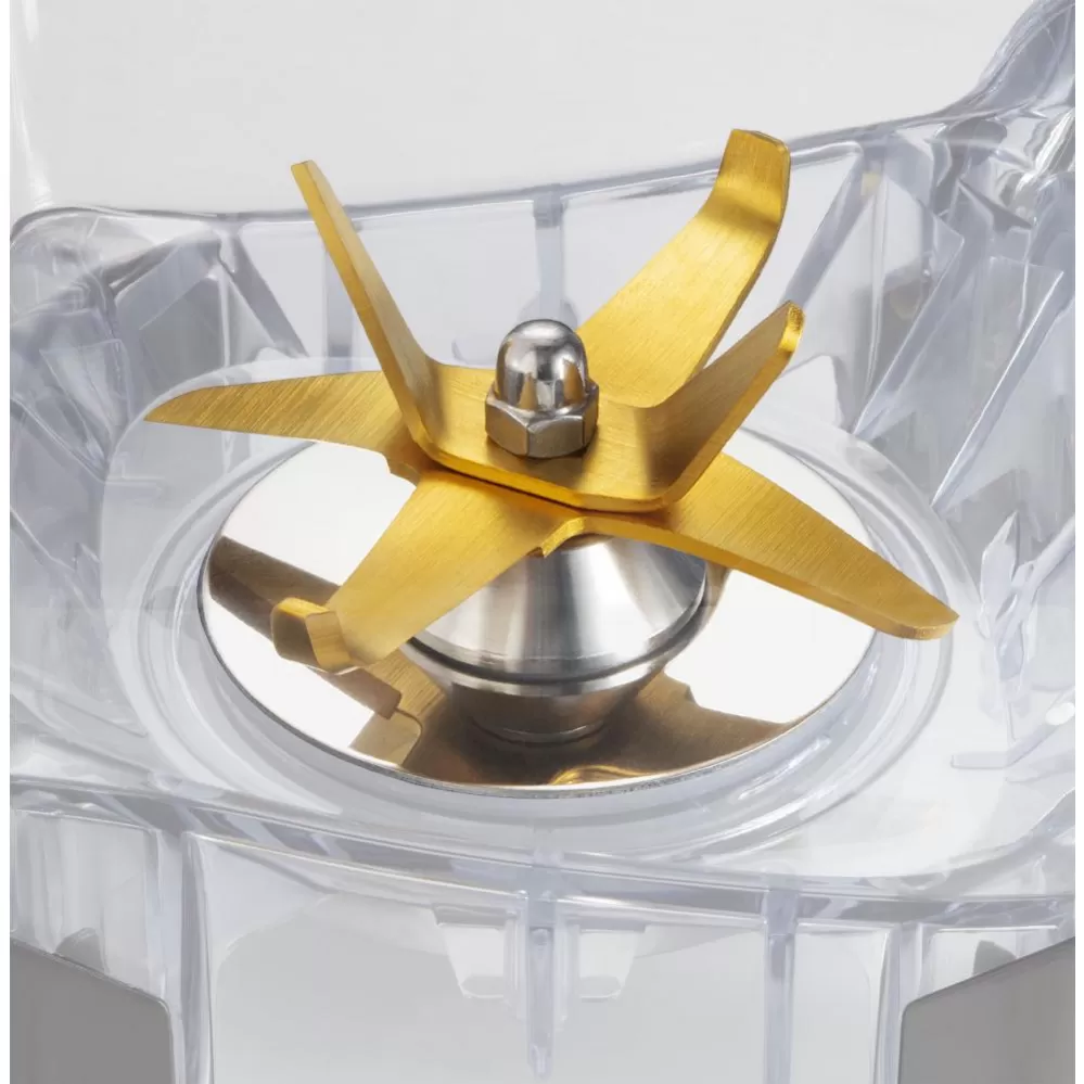 Stolní mixér Philco PHTB 2400W v bílé barvě z řady Titanium Gold vám poskytne vysoký výkon 2000 W, maximální bezpečnost a doplní vzhled vaší kuchyně o moderní futuristický design. 6 nerezových čepelí je opatřeno vrstvou titanového zlata, které jim dodá odolnost a tvrdost, je oděru vzdorná a zdravotně nezávadná. Čepele si tak snadno poradí s ledem, ořechy nebo zmrazeným ovocem.