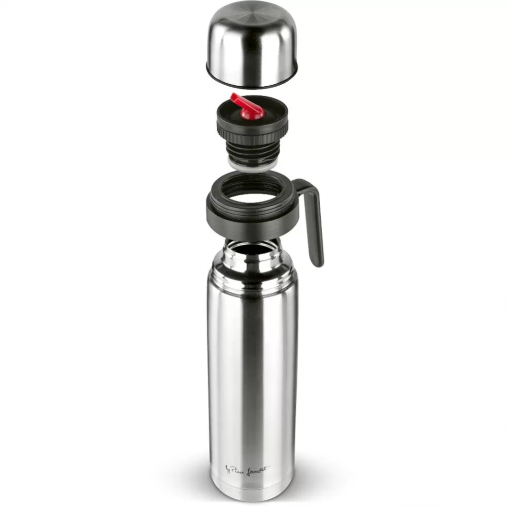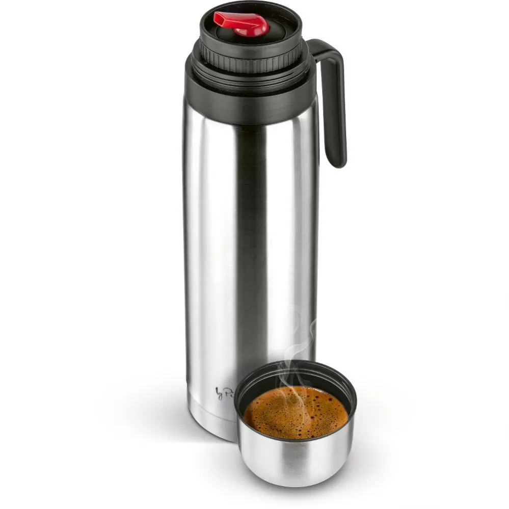 Termoska vyrobena z vysoce kvalitní nerezavějící oceli se šroubovacím uzávěrem, šálkem a plastovým pítkem.