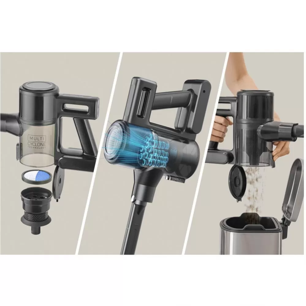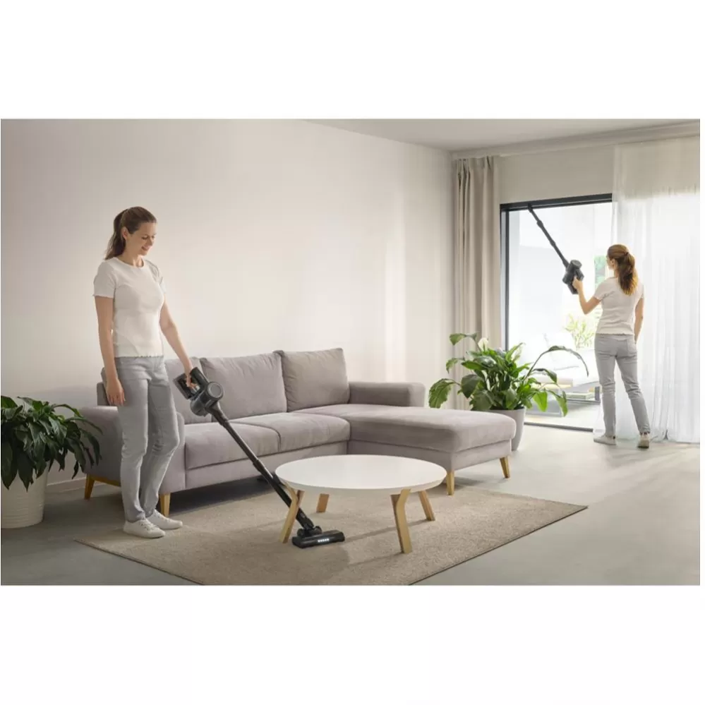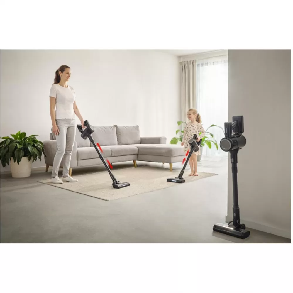 Objevte sílu a eleganci v jednom. Tyčový vysavač Sencor SVC 7221BK 2 v 1 s odnímatelnou ruční jednotkou se stane vaším nepostradatelným pomocníkem pro každodenní úklid. Je vybaven výkonným 200W digitálním motorem a rotačním kartáčem s vlastním pohonem, který si snadno poradí s koberci i tvrdými podlahami a s LED osvětlením na hubici odhalí i ten nejmenší nepořádek. Díky vysoce účinné 22,2V Li-Ion baterii s kapacitou 2 600 mAh získáte naprostou volnost při úklidu bez kabelů. Na jedno nabití zvládne až 35 minut provozu v denním režimu.