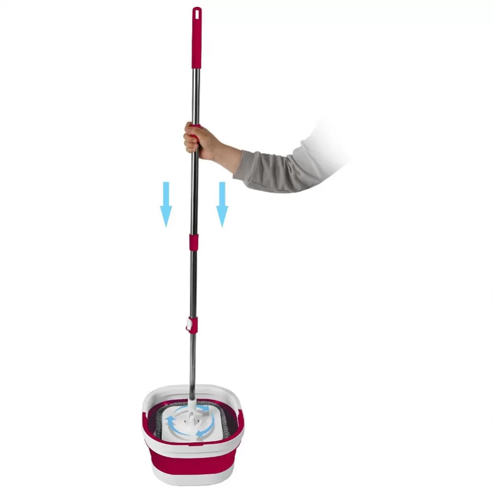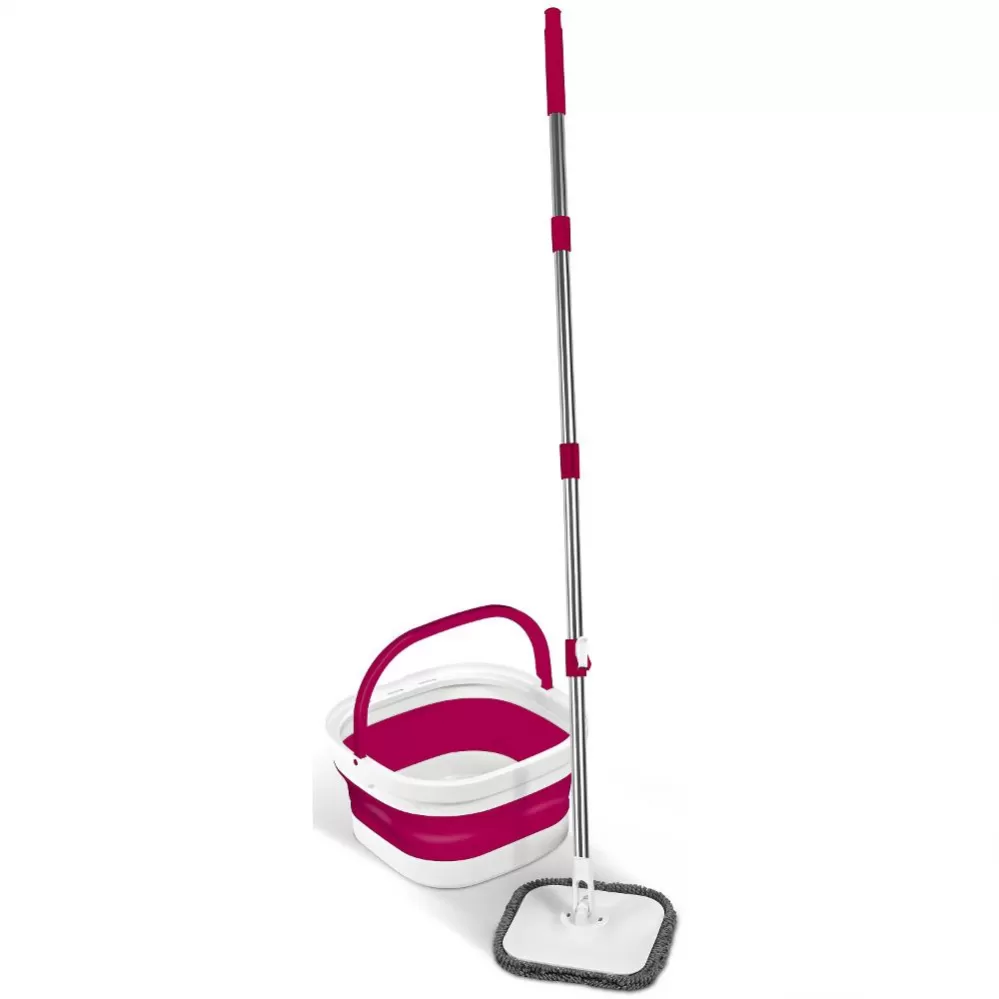 Inovativní mop je vybaven skládacím kbelíkem, který usnadňuje skladování a přenášení. Rotační čtvercová hlava mopu je navržena tak, aby se díky svému tvaru dostala do všech rohů a důkladně je vytřela.