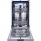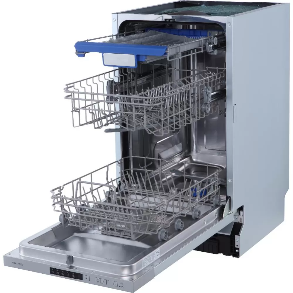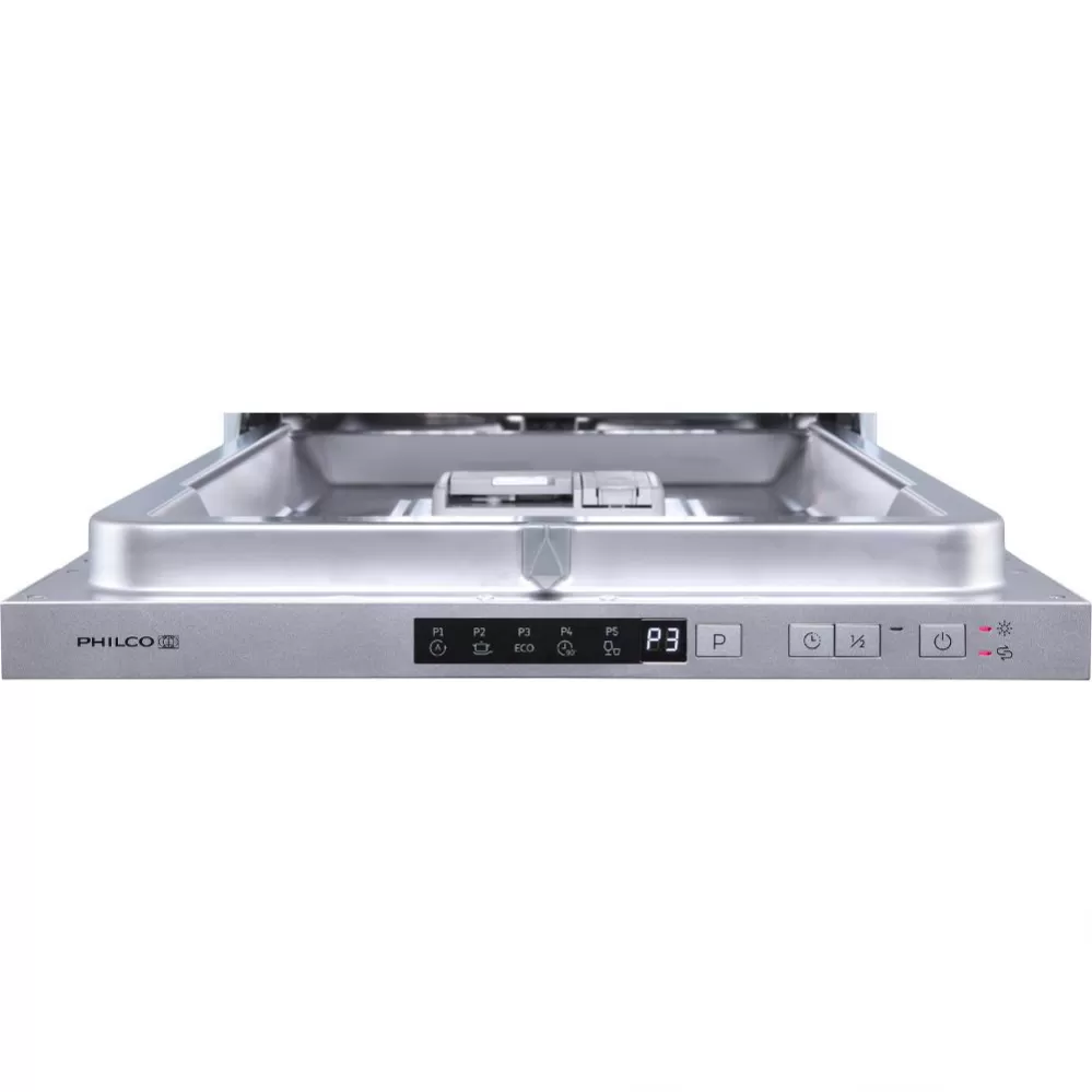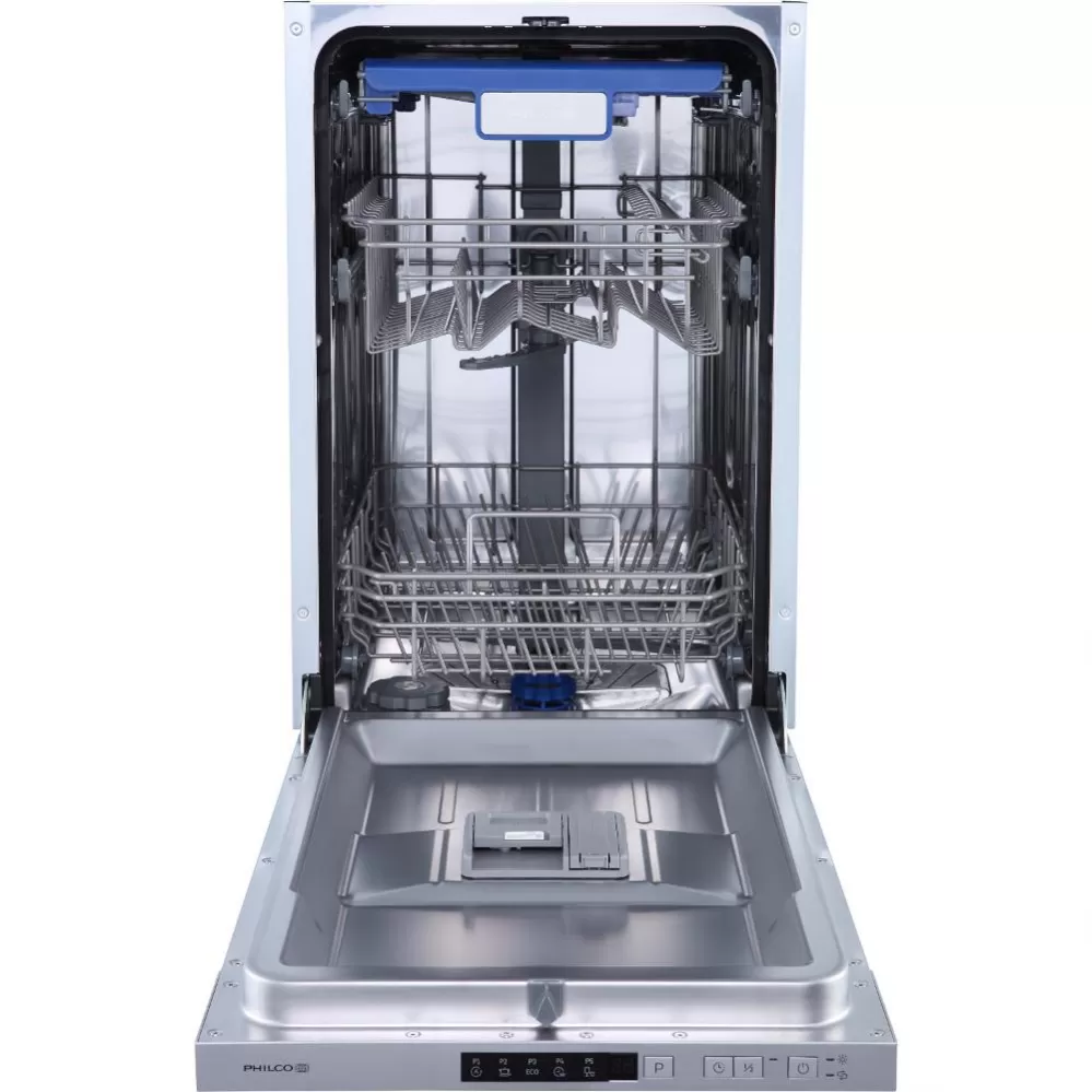 Plně integrovaná myčka Philco PD 1045 DBIT šířky 45 cm, pojme až 10 sad nádobíLED displej je integrovaný a vybrat si můžete z 5 programů. V její výbavě nechybí odložený start ani funkce automatické otevření dveří po domytí.