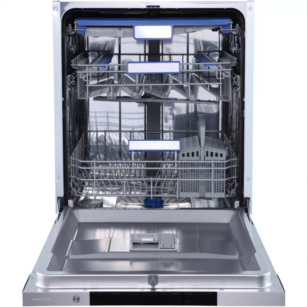 Plně integrovaná myčka Philco PDI 1468 BBIT šířky 60 cm, energetickou třídou B, invertorovým BLDC motorem se zárukou 10 let s bezproblémovým tichým chodem a dlouhou životností. Myčka pojme 14 sad nádobí, má LED displej a dotykové ovládání, vybrat si můžete z 8 programů.