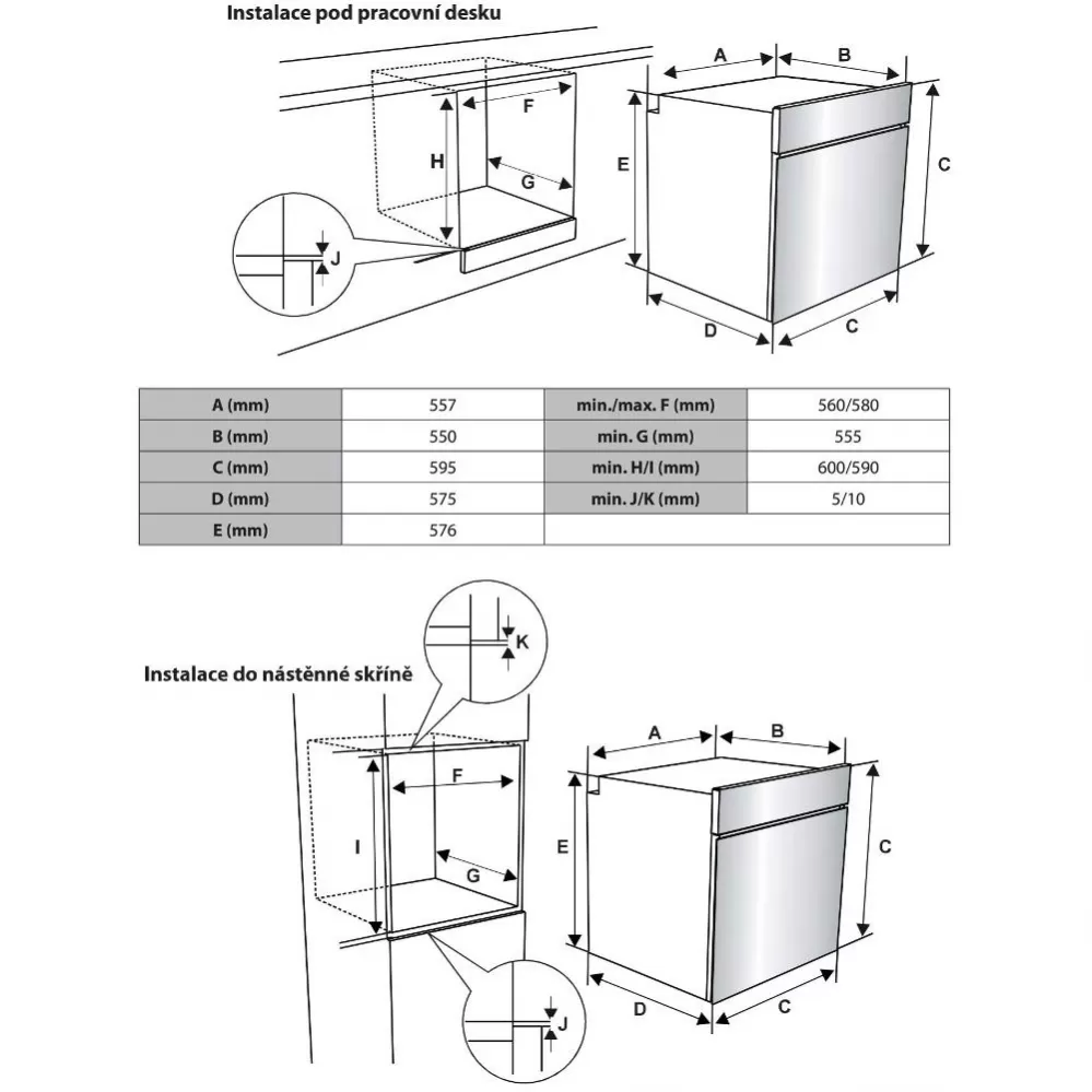 Rozměry pro vestavbu : 59 x 56 x 55,5 cm