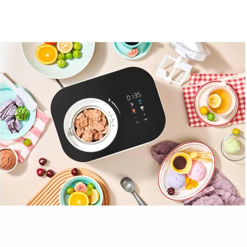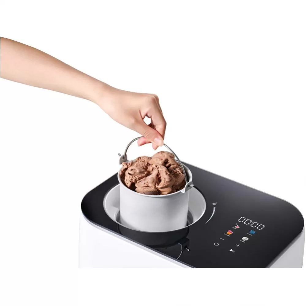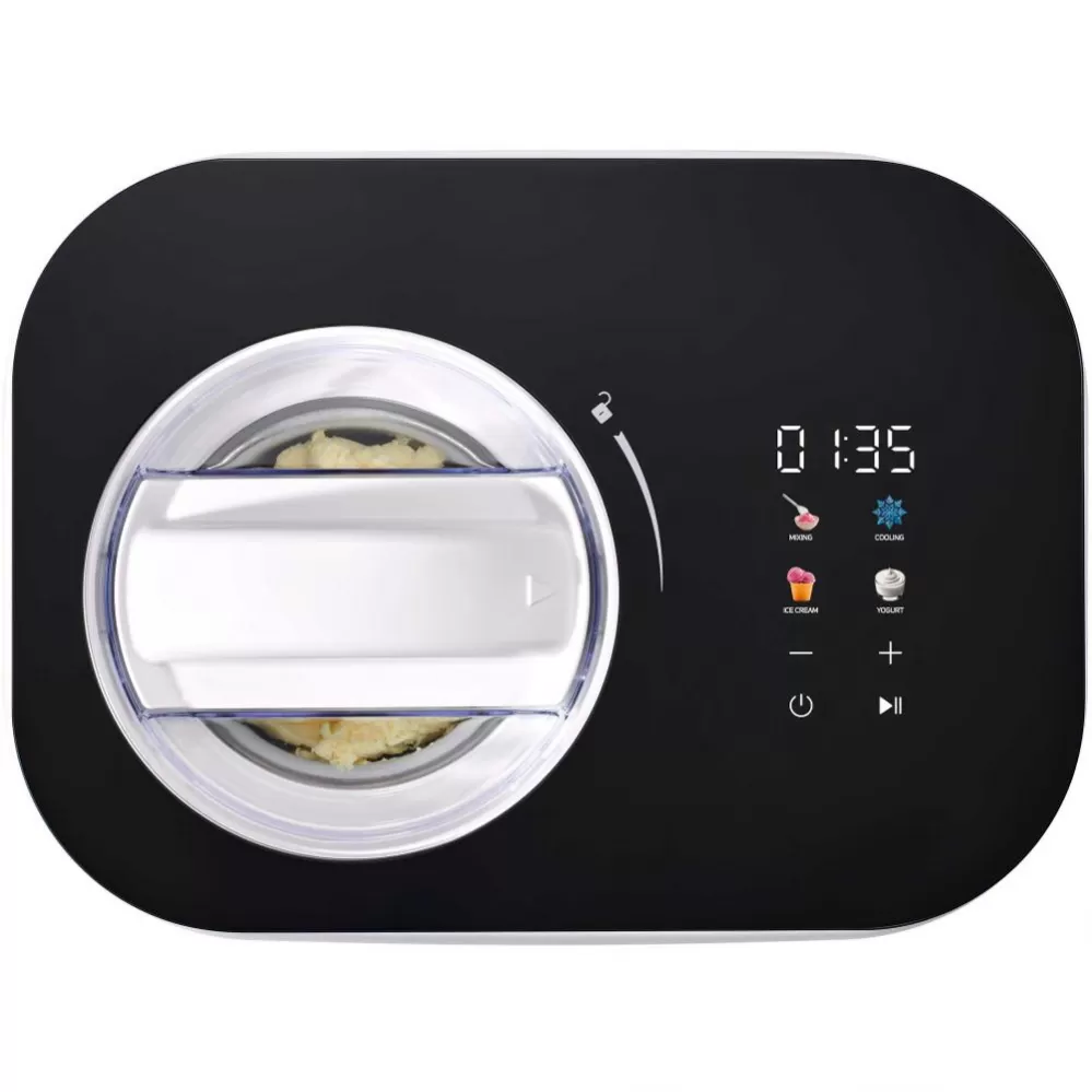 Vychutnejte si domácí pochoutky s lehkostí! Vychutnejte si čerstvou, krémovou zmrzlinu, mražený jogurt nebo dokonce domácí jogurt s tímto plně automatickým výrobníkem zmrzliny s vestavěným kompresorem – není nutné žádné předmrazování! S kapacitou 1 litr jsou vaše oblíbené mražené dezerty hotové za pouhou 1 hodinu. Vyberte si ze 4 automatických programů včetně mixování, chlazení, zmrzliny a jogurtu. Barevný LED displej vás informuje o stavu a odpočítávání v reálném čase. Navíc díky vyjímatelné míse je čištění hračka. Díky funkci Keep Cool až na 60 minut a spotřebě pouhých 100 W je dokonalou kombinací pohodlí a efektivity.